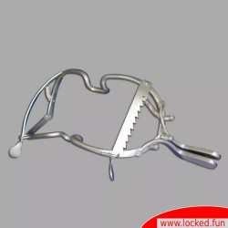 Les grappins tout faits saisissent le palais fermement et pousse par le biais de la dentition et de la tension du ressort la gueule de l’esclave qui n’écoute rien.