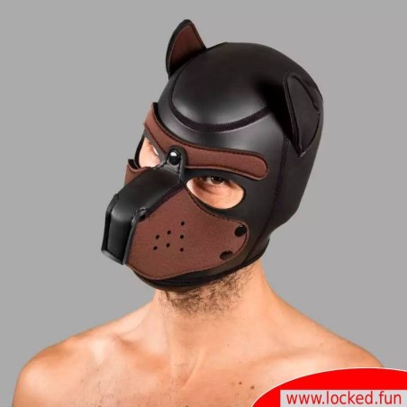 Nos masques de chien en néoprène noir et marron transforment tous les bipèdes en un adorable petit chiot.